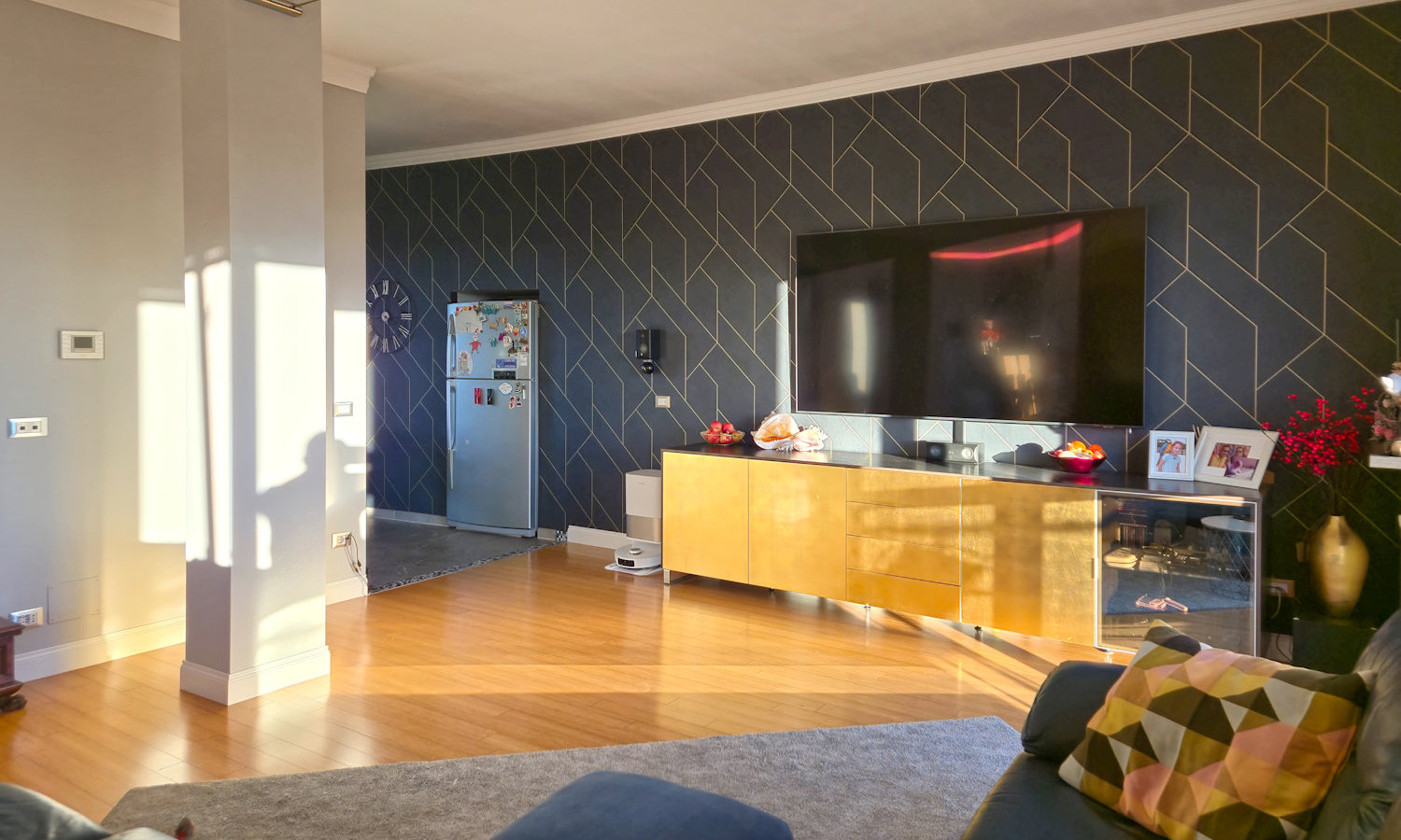 Il primo ingresso da in un ampio e luminosissimo soggiorno / sala da pranzo di oltre 50mq, affacciato a SUD sul primo grande terrazzo (circa 50mq) e connesso con la cucina abitabile.