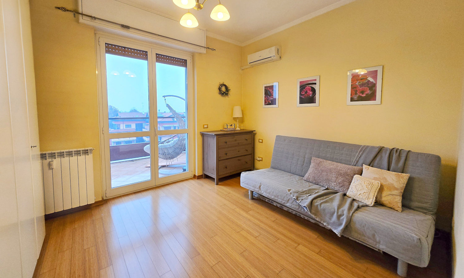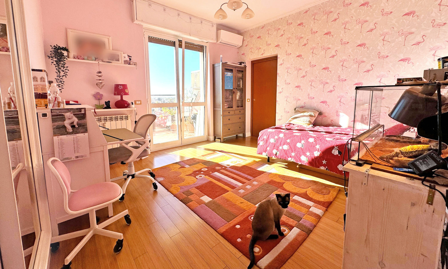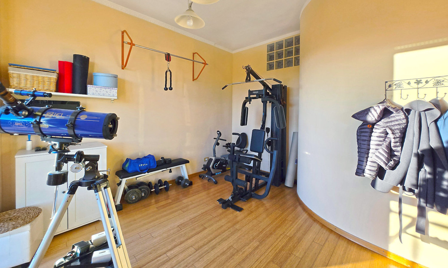 Nella stessa ala dell'appartamento troviamo la prima delle stanze dotata di ingresso privato, bagno ed accesso ad uno degli altri terrazzi, quindi un'altra stanza interconnessa da una doppia porta scorrevole (attualmente adibita a palestra); completa questa zona un grade ripostiglio mansardato (circa 20mq).